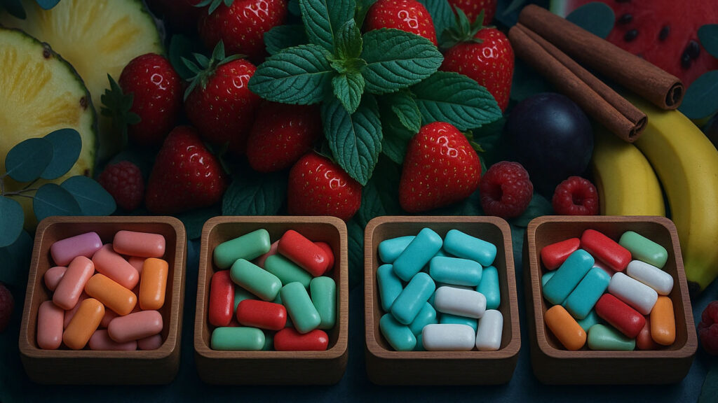 طعم ها نعناع ملایم – نعناع خنک – دارچین – توت فرنگی – بابل گام – استوایی – اکالیپتوس